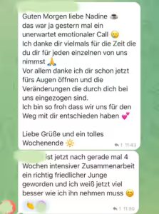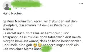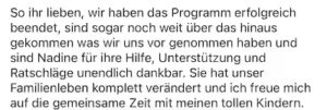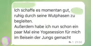"Hab heute sehr darauf geachtet und konnten triggerende Situationen gelassener lösen und mein Kleiner ist besser auf mich eingegangen...