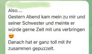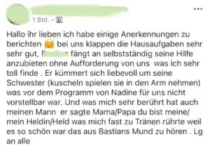"Ich habe heute den Tag ganz bewusst mit den Kinder versucht in Bindung zu bleiben . Mein Mittlerer Sohn ist direkt drauf eingegangen und er wollte wirklich gefühlt den ganzen Tag nur Kuscheln."
